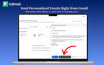 FullMail to dodatek do Gmaila, który przekształca standardowe wysyłanie wiadomości e-mail w efektywny proces personalizacji. Umożliwia on użytkownikom wysyłanie spersonalizowanych wiadomości do nieograniczonej liczby kontaktów, wykorzystując dane z Google Sheets. Bez potrzeby korzystania z zewnętrznych narzędzi, FullMail integruje się bezpośrednio z Gmail, co znacznie upraszcza cały proces. Użytkownicy mogą korzystać z inteligentnych tagów do personalizacji wiadomości, a także ustawić automatyczne przypomnienia, które zatrzymują się po odpowiedzi odbiorcy.